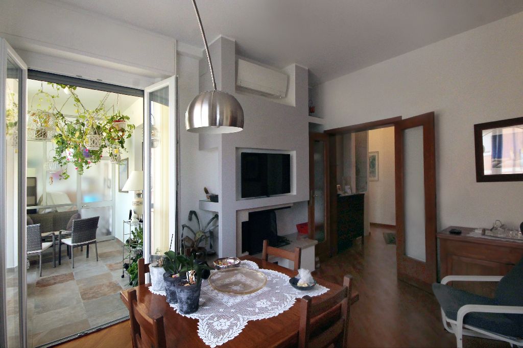 Intervento di trasformazione interna di una unità immobiliare residenziale. Posta al terzo piano di un fabbricato misto, civile abitazione e commerciale, l'intervento ha interessato il recupero funzionale di tutti gli spazi esistenti, con particolare attenzione alla zona living, camino e cucina pranzo.