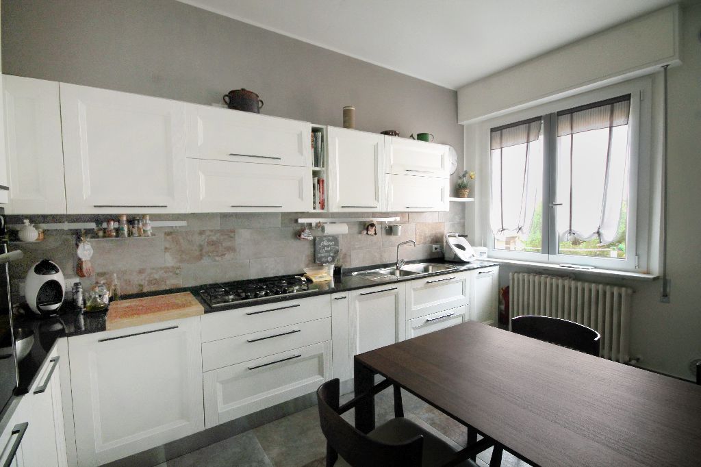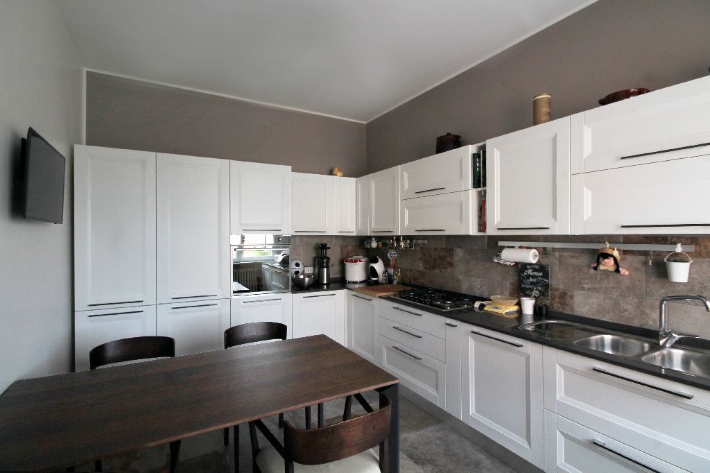 Il rifacimento completo della cucina ha permesso di utilizzare questo locale in modo più interattivo con la sala da pranzo adiacente e la veranda, la quale ha visto il rinnovamento della pavimentazione e l'inserimento di una nuova parete in vetro per suddividere i locali di servizio da quelli di living.